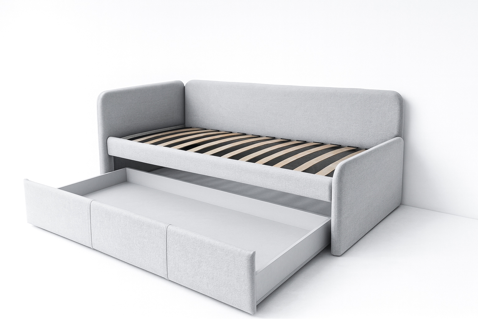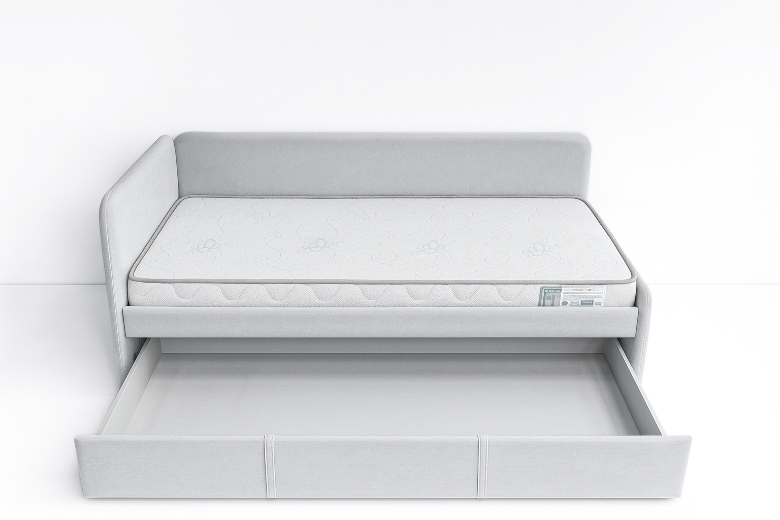 Кровать с универсальной малой спинкой, которую можно установить справа или слева.