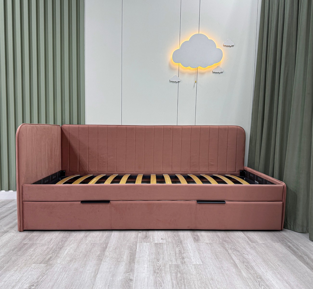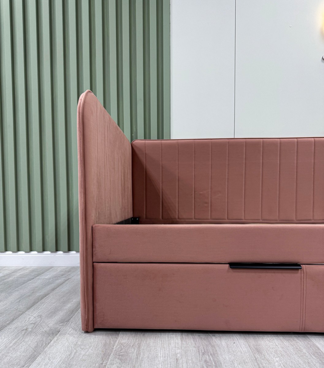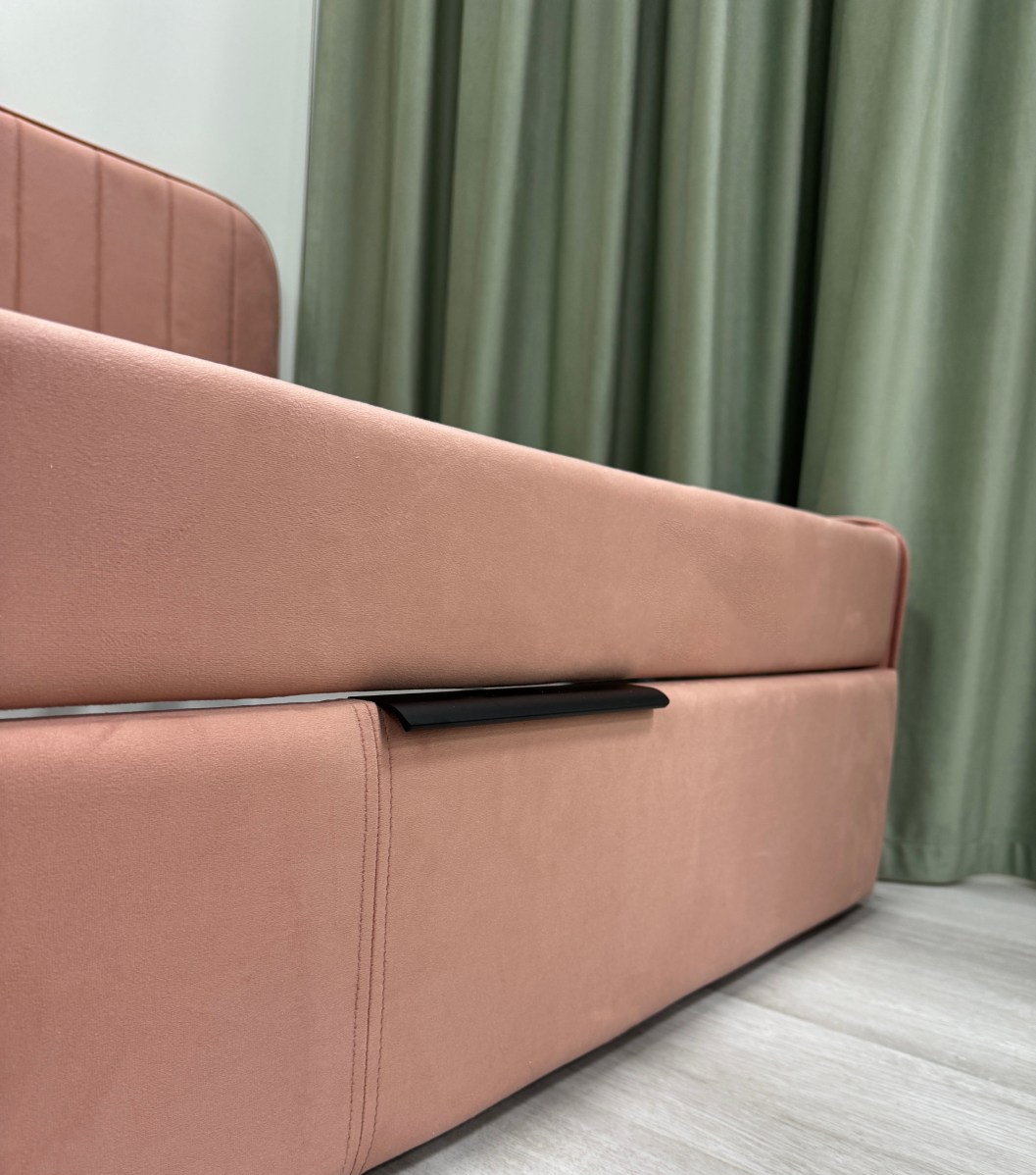 Детская кровать ELLA с вертикальной строчкой и выдвижным ящиком сочетает в себе функциональность, стиль, удобство и комфорт, делая ее отличным выбором для детской комнаты.