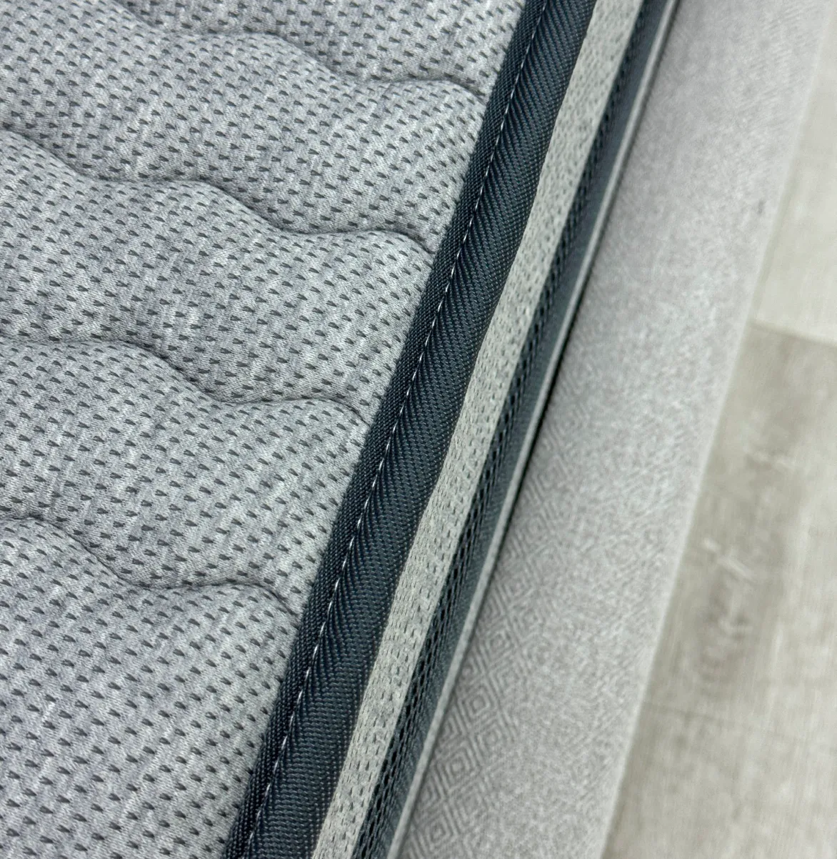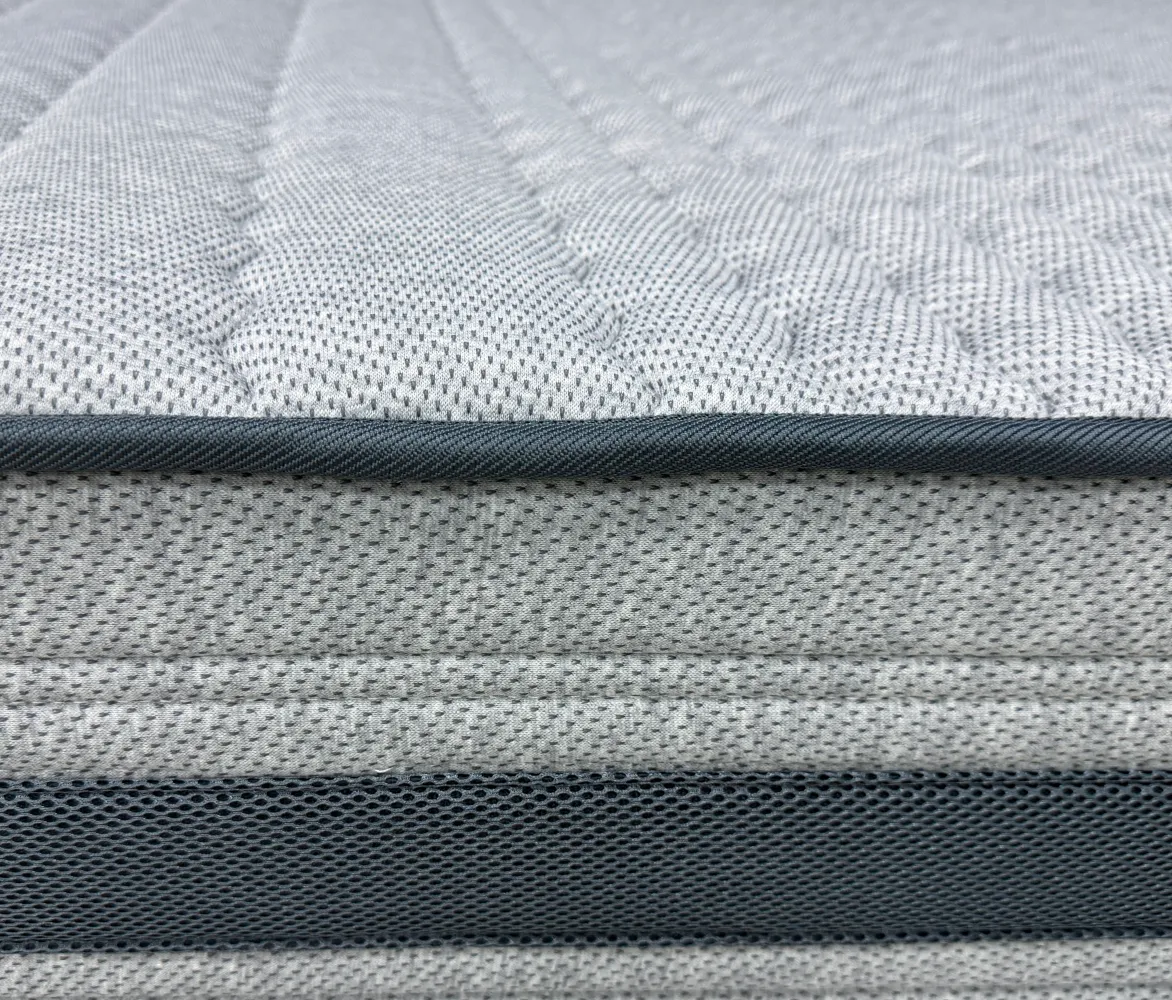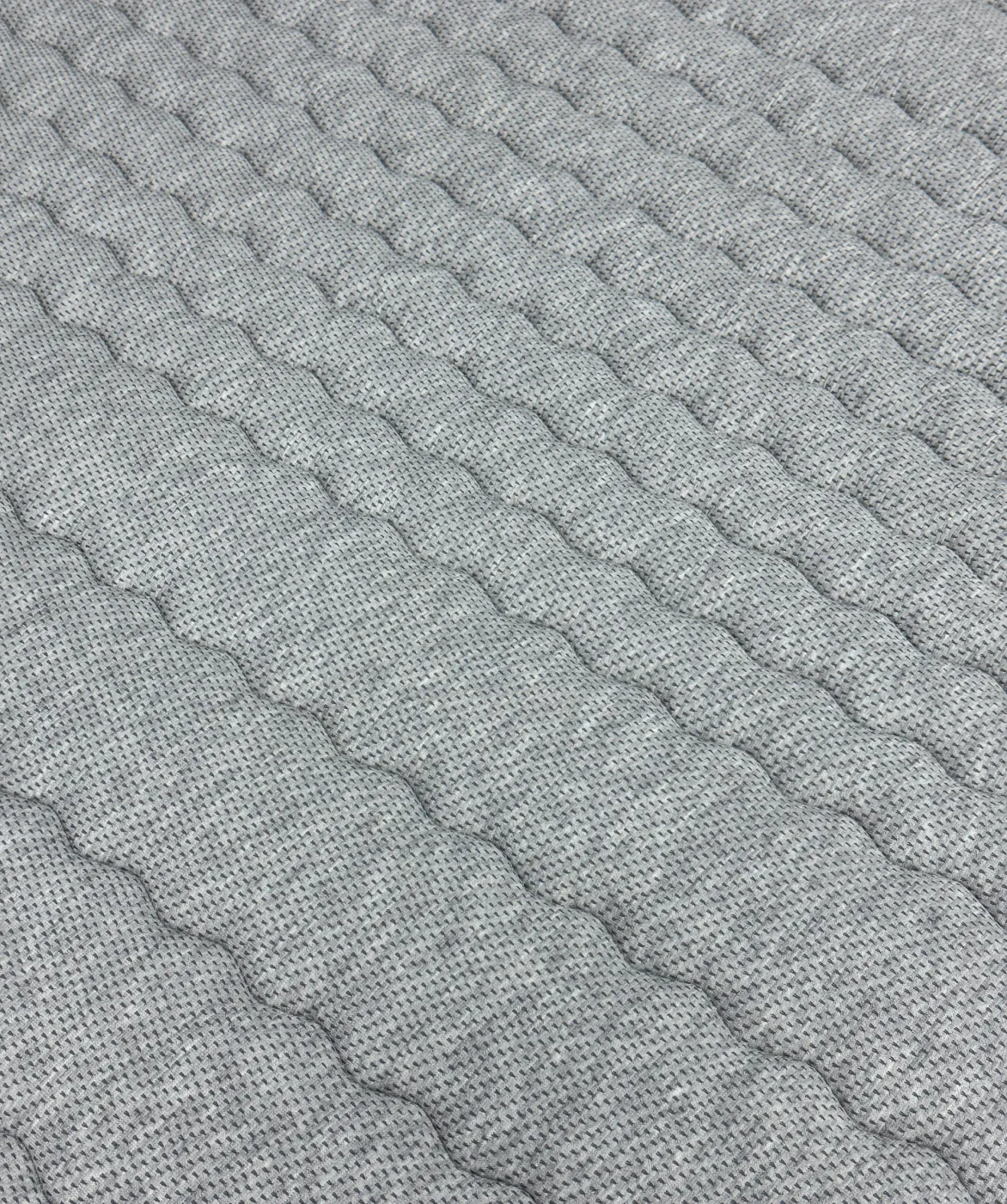 Трикотаж «PESCODY» - Премиальный меланжевый итальянский трикотаж с натуральными волокнами в трендовом приятном сером цвете. Благодаря своей расцветке ткань смотрится стильно и более неприхотлива к незначительным загрязнениям. Натуральные смесовые нити в составе способствуют более эффективному тепло обмену и обладают высокой гигроскопичностью, что обеспечивает комфортный микроклимат спального мест