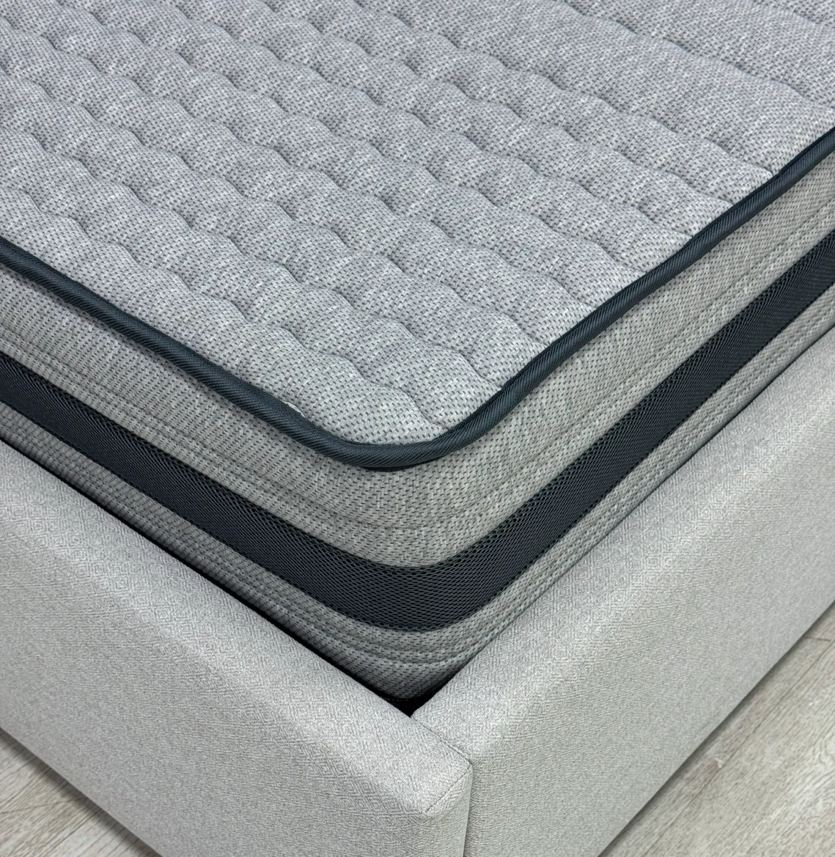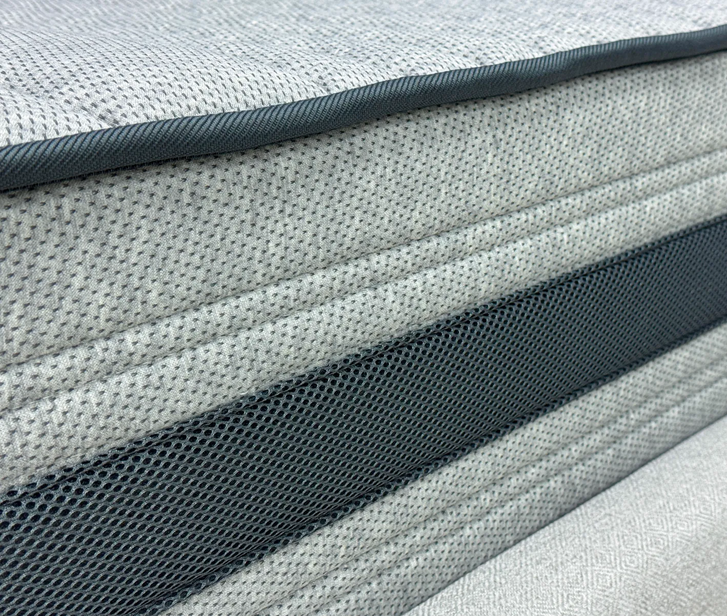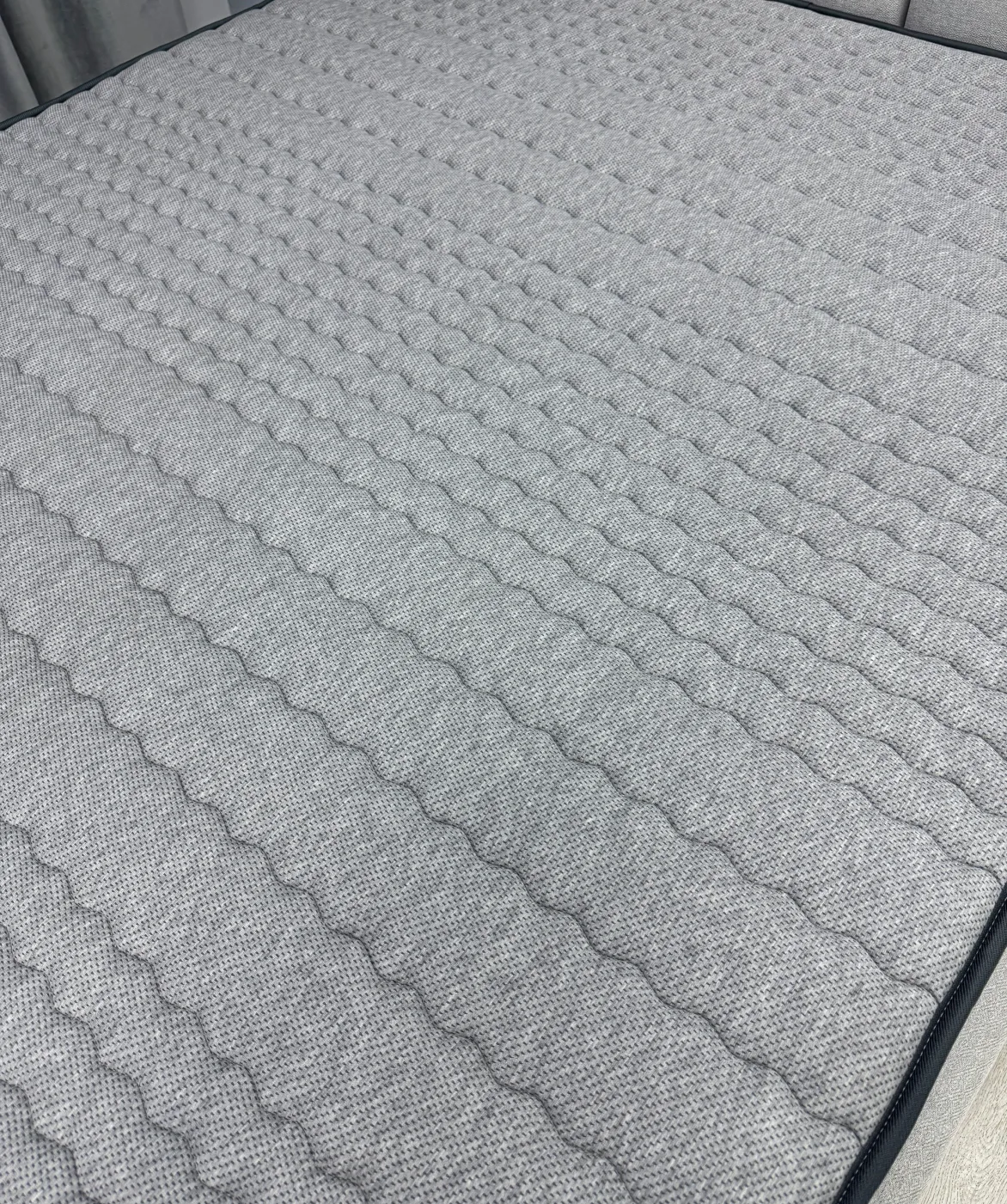 Трикотаж «PESCODY» - Премиальный меланжевый итальянский трикотаж с натуральными волокнами в трендовом приятном сером цвете. Благодаря своей расцветке ткань смотрится стильно и более неприхотлива к незначительным загрязнениям. Натуральные смесовые нити в составе способствуют более эффективному тепло обмену и обладают высокой гигроскопичностью, что обеспечивает комфортный микроклимат спального мест