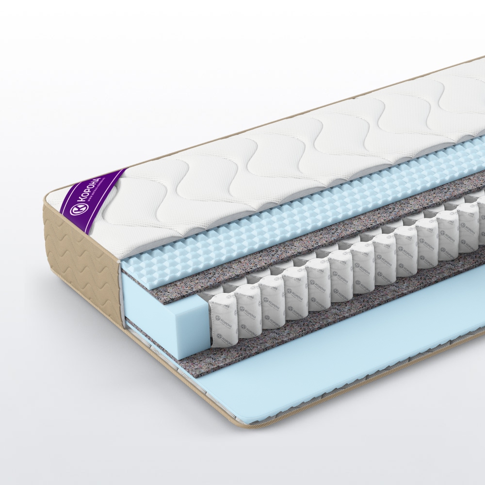 Модель основана на блоке независимых пружин TFK 500. С обоих сторон матрас имеет одинаковые наполнители. Жёстким наполнителем служит хлопковый войлок 10 мм, верхним слоем лежит высокоэластичная массажная пена 20 мм. Матрас в чехле на выбор из трикотажа «Even», стеганный на синтепоне 300 г или жаккарда х/б «Aries», стеганный на синтепоне 200 г. Расширенная гарантия на пружинный блок 5 лет. Весовая нагрузка – до 120 кг, высота матраса – 24 см.