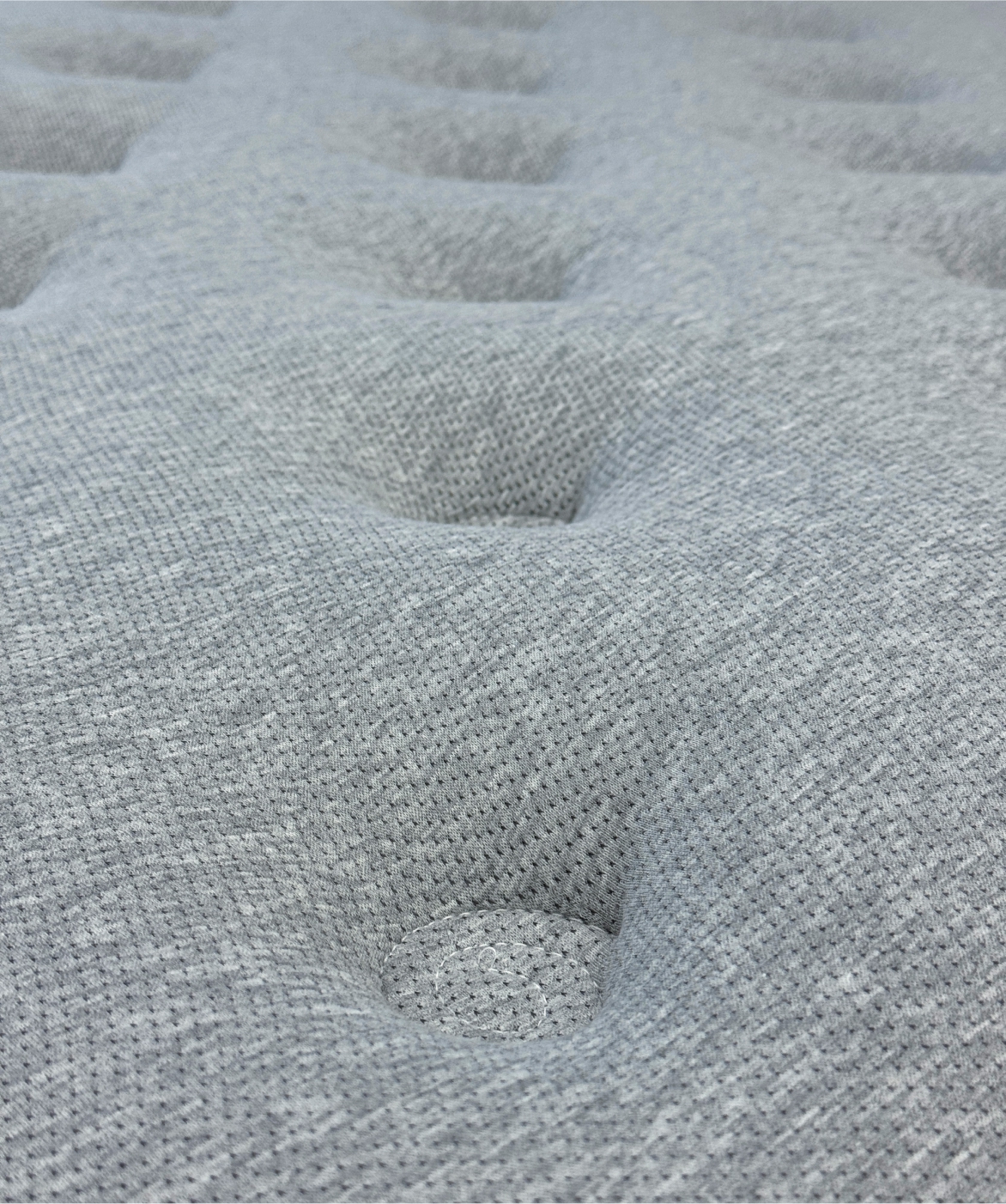 Трикотаж «Pescody» - премиальный меланжевый итальянский трикотаж с натуральными волокнами в трендовом приятном сером цвете. Благодаря своей расцветке ткань смотрится стильно и более неприхотлива к незначительным загрязнениям. Натуральные смесовые нити в составе способствуют более эффективному тепло обмену и обладают высокой гигроскопичностью, что обеспечивает комфортный микроклимат спального места