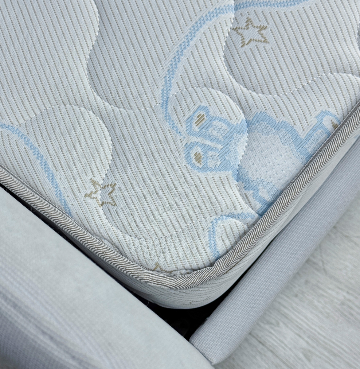 Трикотаж «Ovis» - это мягкий, дышащий и приятный на ощупь материал, созданный специально для обеспечения максимального комфорта и безопасности ребёнка во время сна. Благодаря своей эластичной структуре ткань легко подстраивается под форму матраса, не образуя складок, а высокая износостойкость гарантирует долгий срок службы. Материал обладает хорошей воздухопроницаемостью, что помогает поддерживать оптимальный микроклимат в спальном месте. Поверхность трикотажа «Ovis» гипоаллергенна и не вызывает раздражений, что особенно важно для чувствительной детской кожи.)
