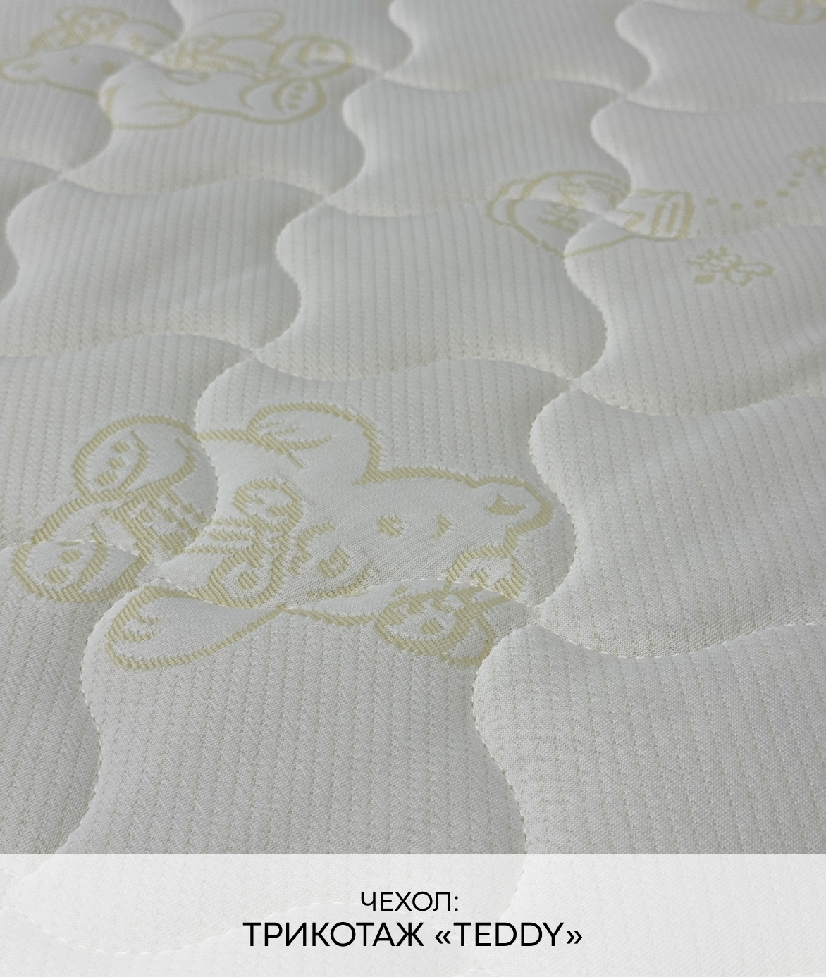 Трикотаж «Teddy» — это невероятно мягкая и уютная ткань с нежной, слегка пушистой поверхностью, напоминающей плюшевого мишку. Она создана специально для детских матрасов, чтобы каждый сон малыша был максимально комфортным и тёплым. Благодаря своей структуре трикотаж «Teddy» прекрасно сохраняет тепло, оставаясь при этом дышащим материалом, который поддерживает оптимальный микроклимат. Ткань гипоаллергенна, не раздражает нежную кожу ребёнка и устойчива к истиранию, сохраняя свою мягкость и привлекательный вид на долгие годы.