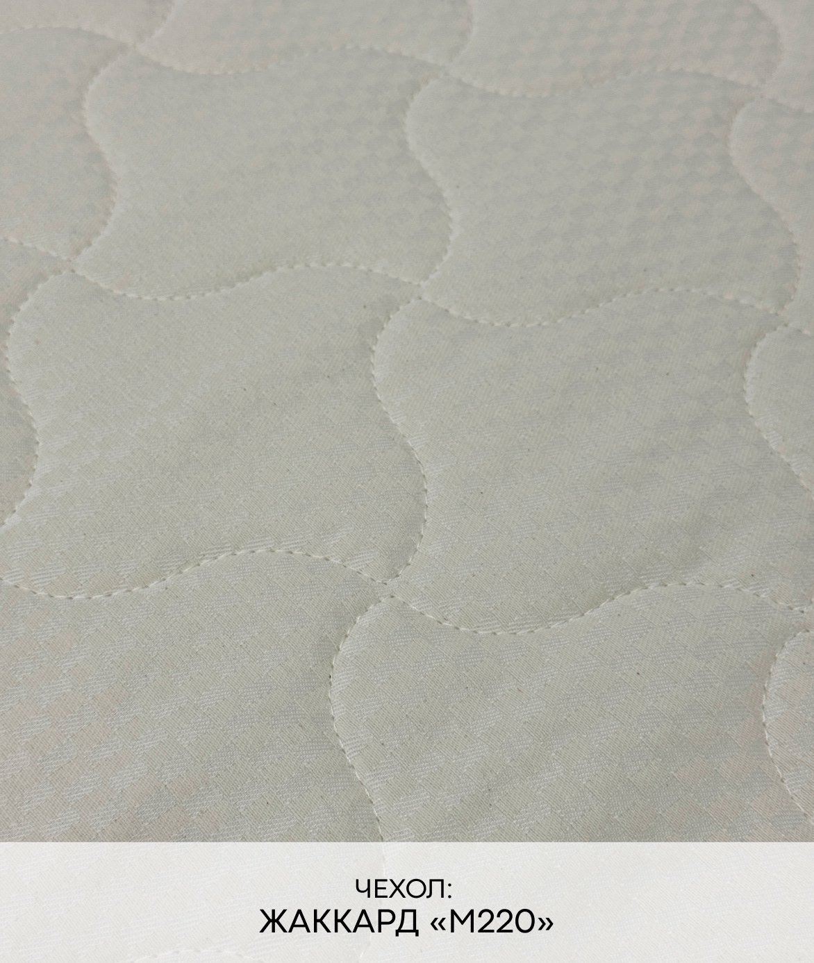 Жаккард «М220» — прочная и износостойкая ткань, которая одинаково хорошо подходит для чехлов детских и взрослых матрасов, а также топперов. Благодаря высокой плотности материал надёжно защищает наполнение от износа, а его плотное переплетение нитей обеспечивает долговечность и устойчивость к растяжению. Ткань сохраняет форму и внешний вид даже при активной эксплуатации, а её гладкая поверхность приятна на ощупь и проста в уходе. Жаккард «М220» обладает воздухопроницаемостью, что способствует поддержанию комфортного микроклимата во время сна.