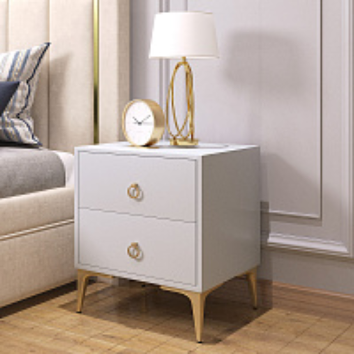 Новая прикроватная тумба «Valencia» в стиле ар-деко прекрасно дополнит облик современной спальни и придаст ей изысканности. Каркас тумбы изготовлен из качественного МДФ высокой плотности и покрыт белой матовой эмалью в 5 слоев. Данное покрытие устойчиво к возникновению царапин и воздействию ультрафиолета. Выдвижные ящики с бесшумным открытием оснащены механизмами с доводчиками и выдерживают нагрузку до 8 кг.